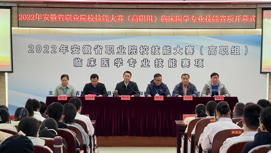 为全面贯彻党和国家的最新职业教育精神,推动临床医学实践教学改革,创新实践教学体系,加强医学生基本理论、基本技能、临床思维、医学人文精神和团队合作意识等综合素质的培养,搭建医教协同、院校沟通、共同提高的医学教育实践发展平台。2023年2月25日-26日,2022年安徽省职业院校技能大赛(高职组)临床医学专业技能赛项在安徽医学高等专科学校顺利举行!
