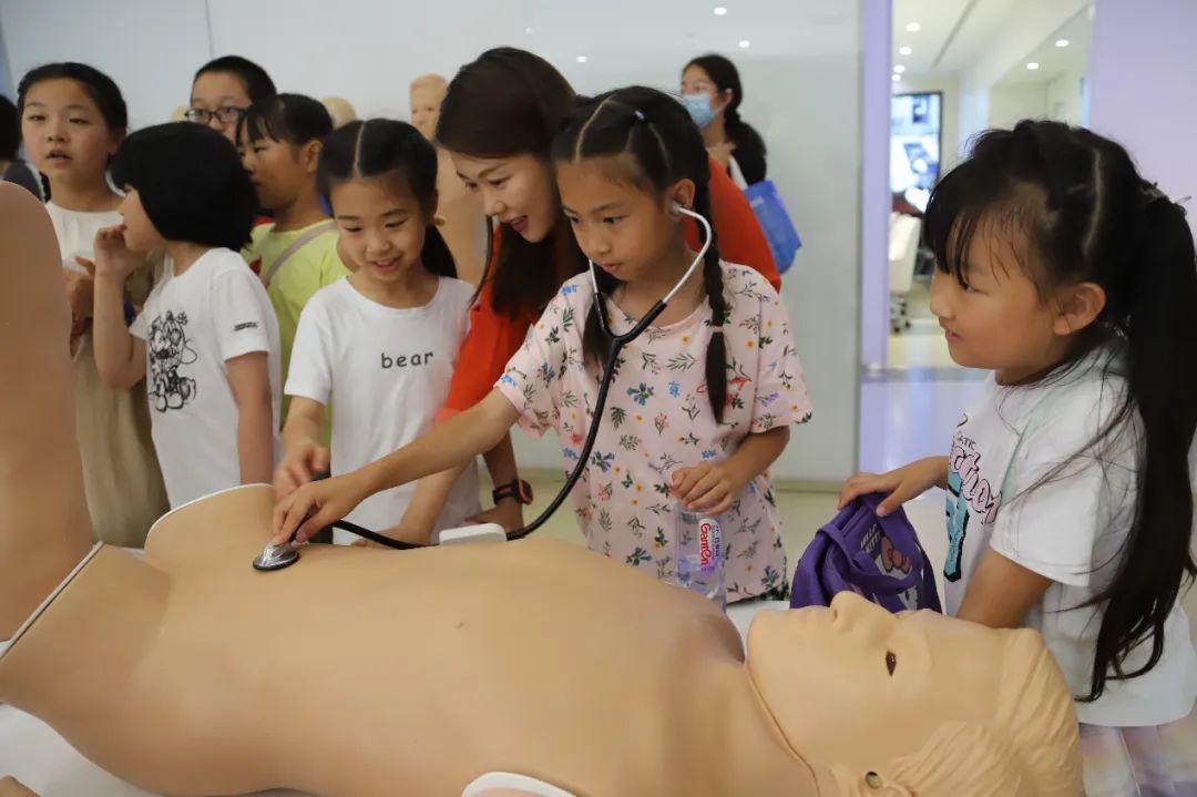小朋友们集合参观天堰医学模拟中心,深入了解企业文化,探索医学奥秘